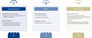 Das aktiv gesteuerte Hawk-Eye Zertifikat besteht aus 60 bis 100 liquiden internationalen Aktien mit dem Ziel, die Entwicklung des globalen Aktienmarkts bei vergleichbarem Risiko langfristig zu übertreffen. Die Anlagestrategie basiert auf der Überzeugung, dass Märkte von Emotionen und Anlegerverhalten geprägt sind. Durch die Verbindung von Chartanalyse, Sentiment Indikatoren und quantitativen Modellen werden wiederkehrende Muster und Trends frühzeitig erkannt. Die Titelauswahl erfolgt diskretionär innerhalb eines regelbasierten Rahmens. Das Zertifikat folgt der UCITS-konformen 5/10/40-Regel und nutzt gezielte Länder- und Sektorabweichungen zur aktiven Chancenwahrnehmung.